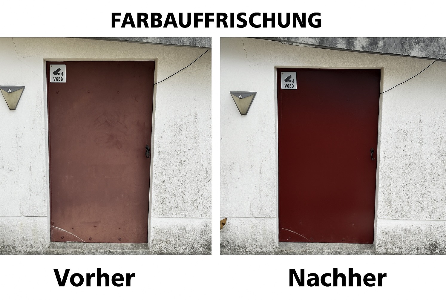 Unsere professionelle Farbauffrischung bringt Fassadenfronten, Türen, Garagentore, Briefkästen und Fensterläden wieder zum Strahlen – schnell, sauber und kostengünstig.